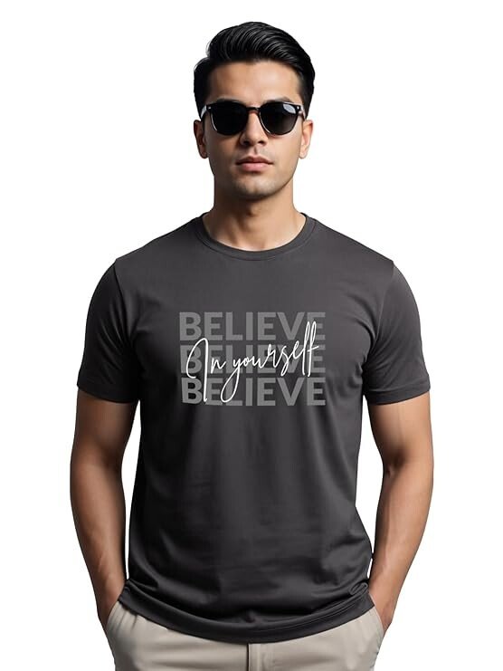 Men’s Motivational Printed Tshirt | Regular Fit T Shirt | Cotton Lycra Stretch Fabric | Sizes S to 7XL| Believe in Yourself Graphic